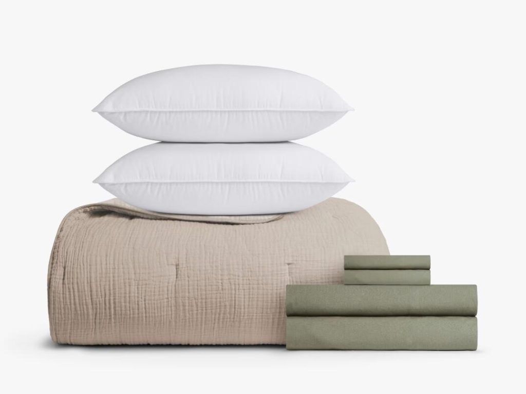 Parachute’s bed bundle collection offers a range of options to cater to every preference. Whether you prefer the crisp feel of the Percale bundle, the luxurious softness of the Sateen or Organic Soft Luxe bundles, or the cozy warmth of the Brushed Cotton bundle, there’s a set to suit your needs. The Linen bundle offers relaxed elegance, while the Organic Cotton bundle combines comfort with sustainability. The Dorm Room bundle is perfect for students needing to create a comfortable sleep space away from home. Each bundle is crafted from high-quality materials for durability and comfort.